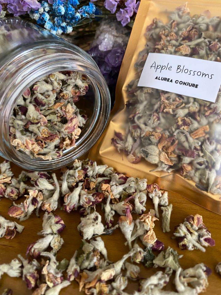The apple is often used in love spells and divinations. The blossoms are added to incense, mojo bags and bath to draw love.