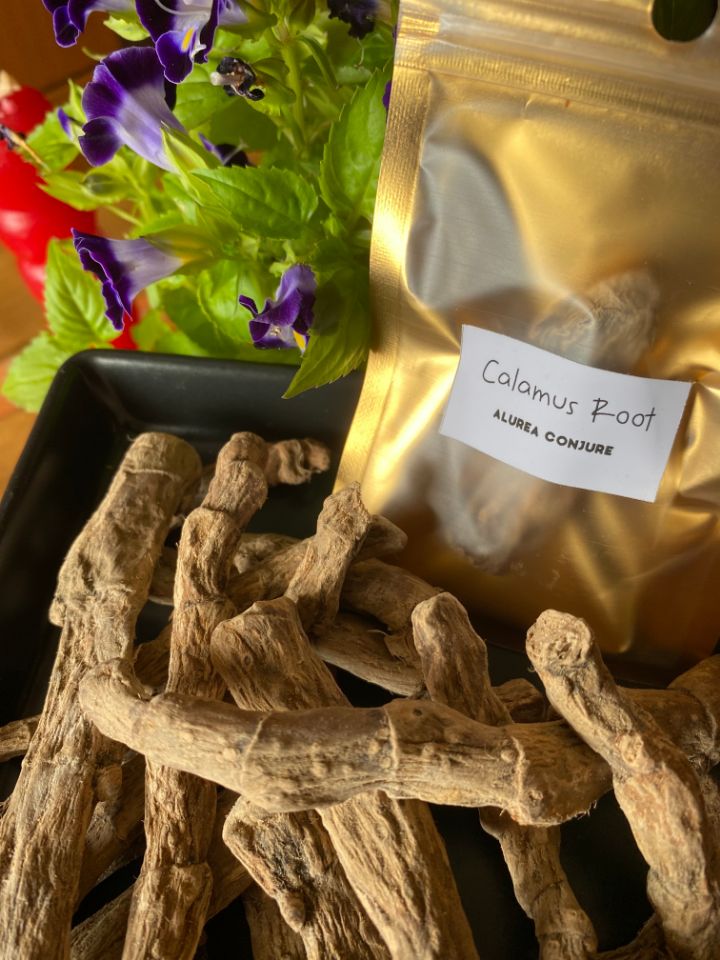 A whole calamus root is used to control people and situations. It is the main ingredient in most commanding and domination spells. Bathe with calamus and vetiver to radiate personal charm and power.