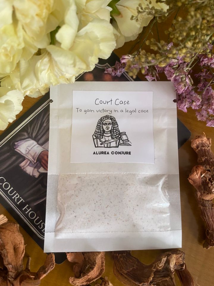 Used to gain victory or favourable outcome in a legal case. Contains essential oil of Little John root, Deer’s Tongue leaves and other herbs reputed to provide courtcase success