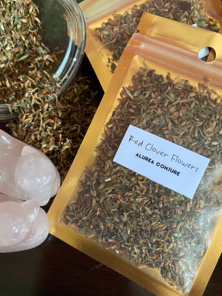 Red Clover Flower brings good luck in love and marital happiness. Make a love bath using red clover flowers, rose petals, damiana, catnip, lovage, ginger, and lavender. Light a red or pink candle dressed with the same herbs, and pray for your lover to come close. Do this for nine days starting on a Friday during the waxing moon.